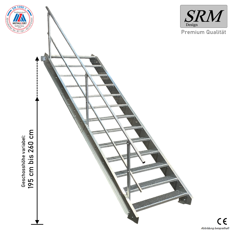 13 Stufen Stahltreppe Breite 60-160 cm Geschosshöhe 195-260 cm Geländer einseitig
