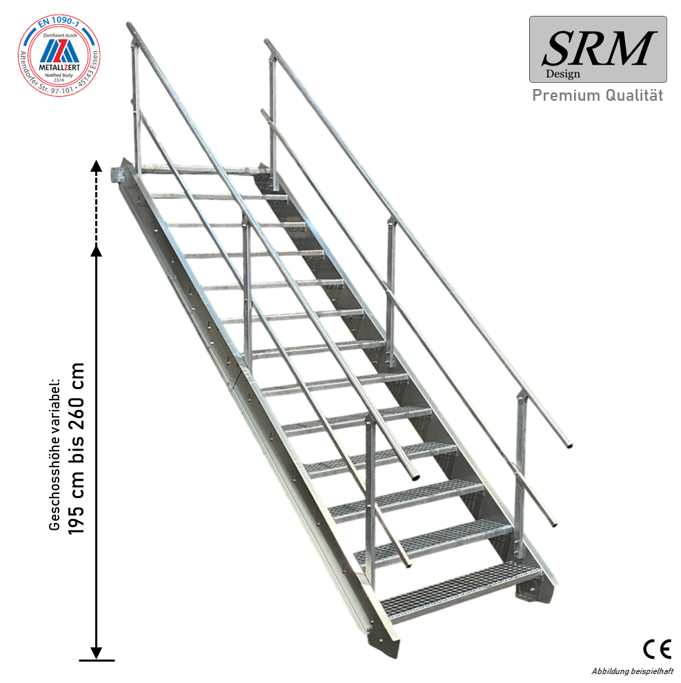 13 Stufen Stahltreppe Breite 60-160 cm Geschosshöhe 195-260 cm Geländer beidseitig