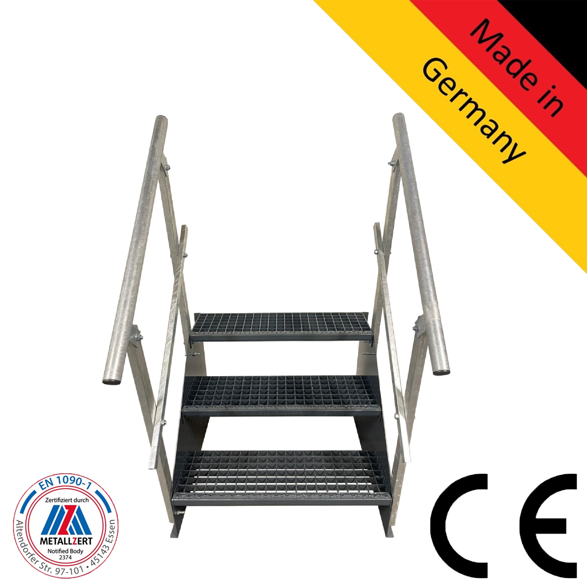 3 Stufen Standtreppe Modell 1 freistehend komplett anthrazit Stahltreppe Breite 60 - 160 cm, Höhe 63 cm