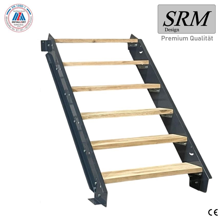7-er Wangentreppe anthrazit mit Stufenkonsolen für Holzst…